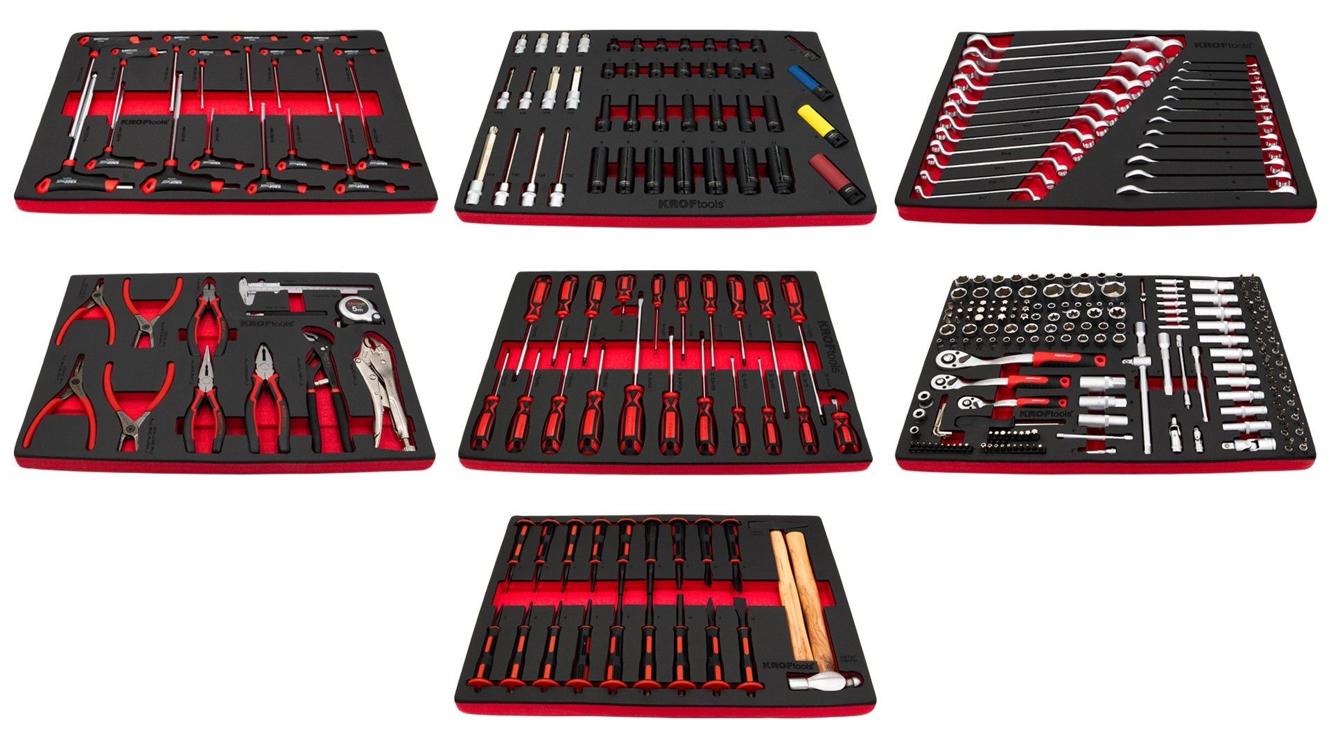 Módulo 7 | (1x) Martelo de mecânico 300 g (aço carbono com cabo de madeira) (1x) Martelo de bola (ball pein) 16 oz (aço carbono com cabo de madeira) (18x) Cinzéis: cilíndricos, cónicos, triangulares, planos e ponteiro central (CRV) |
